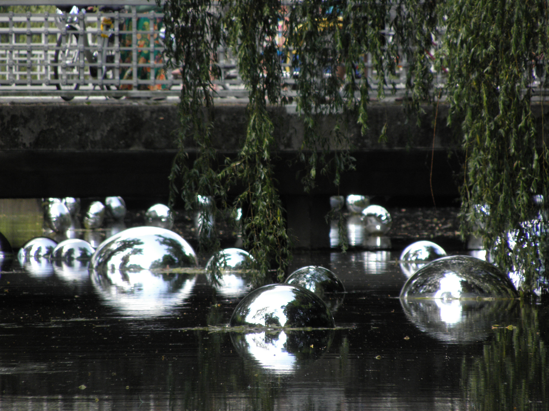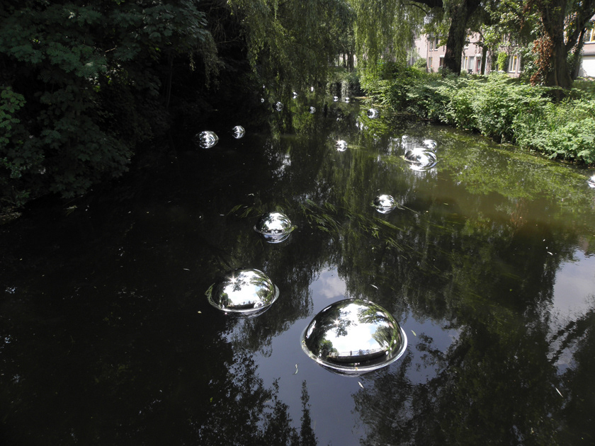 24 spiegelende bollen zijn, drijvend, in de Dommel gelegd. Er onstaat een beeld waarin de Dommel , de lucht en de gehele omgeving in één blik waargenomen kunnen worden.